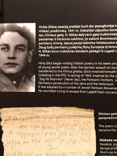 A panel on Hirsh Glick, poet and freedom fighter, at the Vilna Gaon Jewish Museum of History. PHOTO: Velda Abramson.