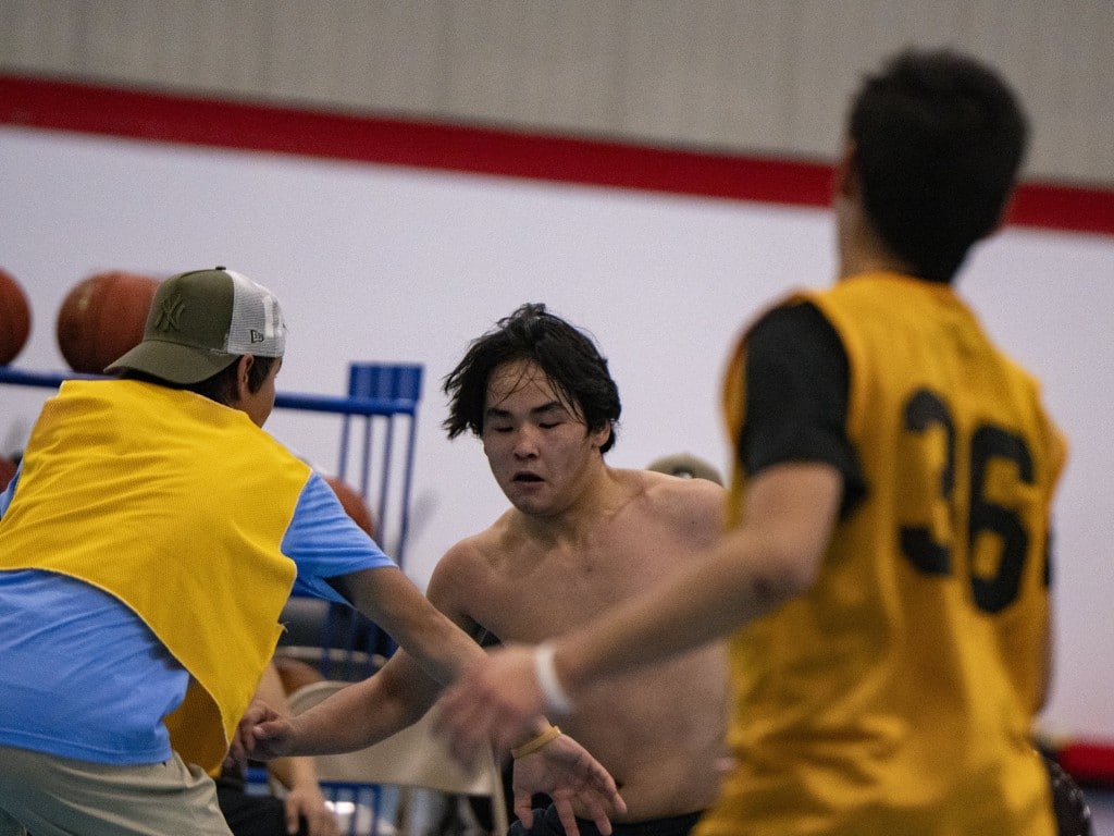 Etienne Sioui is a Huron-Wendat former pro basketball player from Wendake. He was invited to coach in Nunavik, where he trained a group of older kids on their footing and stances, making sure they are solid on the ball when defenders rough them up.