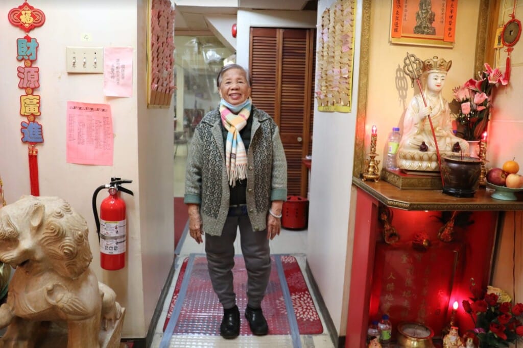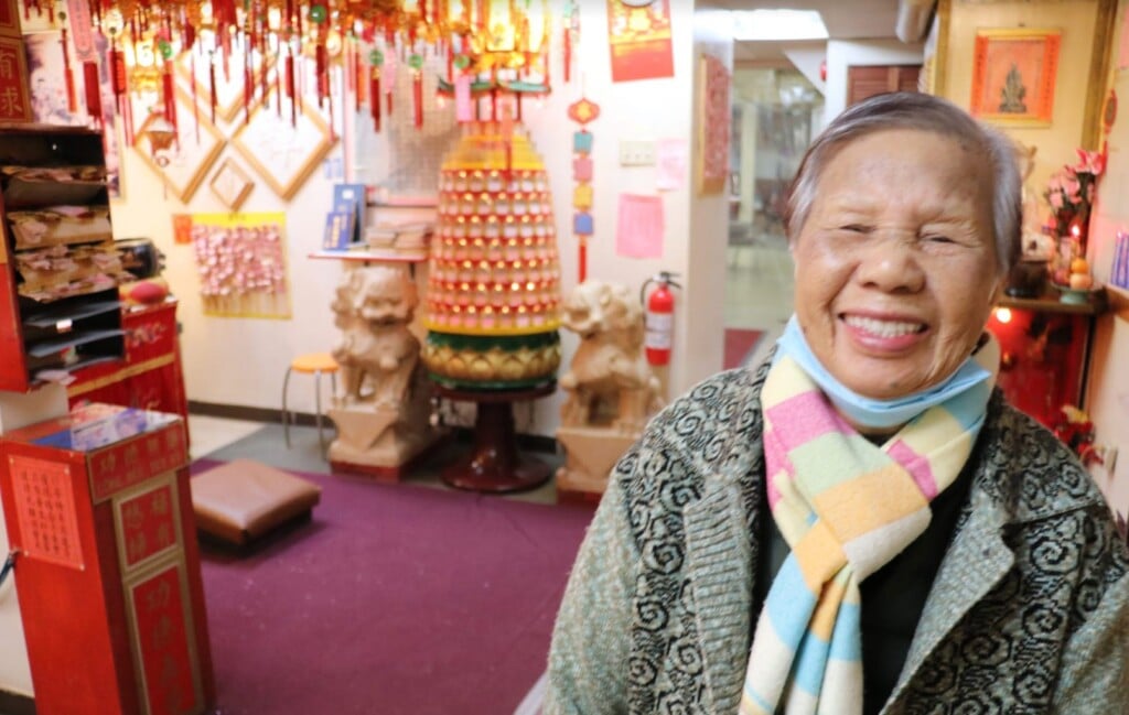 Lo spends her days maintaining the temple, where red lanterns and prayer cards hang from its ceiling, and Buddhist gods sit perched on an altar along the wall. She says before the pandemic, the space was abuzz with seniors who came to pray, play cards, and enjoy community meals.