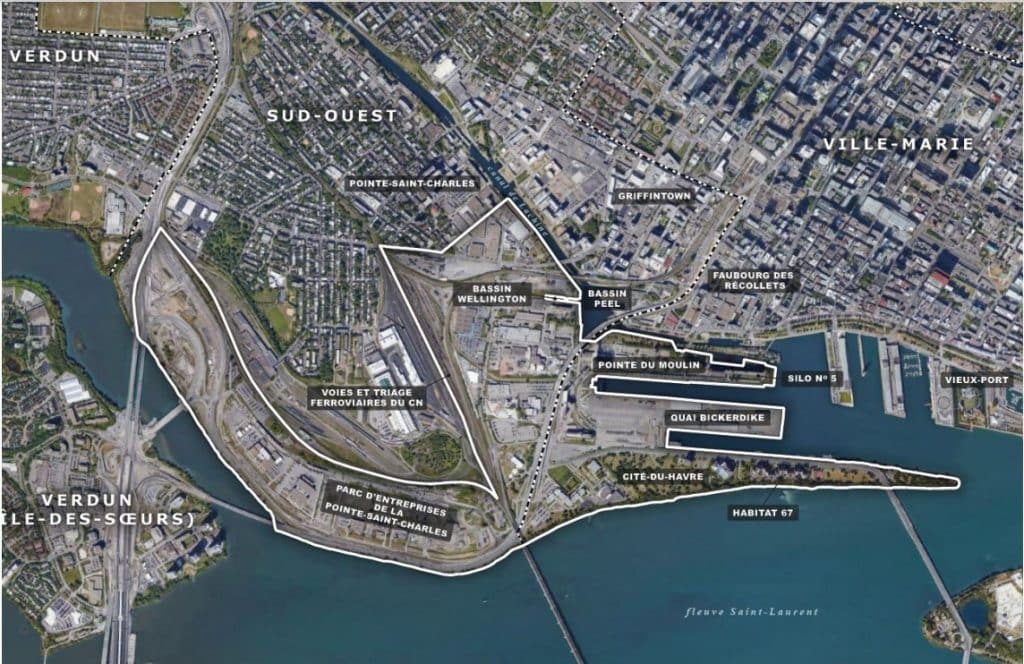 Even before it was identified as a strategic sector in the city’s 2015 Schéma d’aménagement et de développement, a massive redevelopment plan for the Island of Montreal, Bridge-Bonaventure has been drawing the interest of private developers who’ve been buying up whatever land they can because of its high economic potential. It’s right next to Griffintown, a mini-city that sprung out of the ground in just a few years, and the newly-built REM passes through, though as of yet there is no official plan for a stop within the sector. It’s also mostly undeveloped land, as various industrial buildings (and an entire neighbourhood) were demolished when the area surrounding the Lachine Canal was de-industrialized in the 1900s.