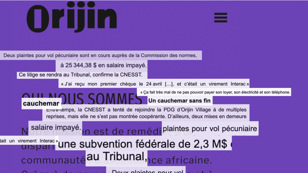 Entre-temps, la CNESST a tenté de rejoindre la PDG d’Orijin Village à de multiples reprises, mais elle ne s’est pas montrée coopérante. D’ailleurs, deux mises en demeure ont été envoyées en juin 2025 après que les plaintes ont été transférées au département juridique.