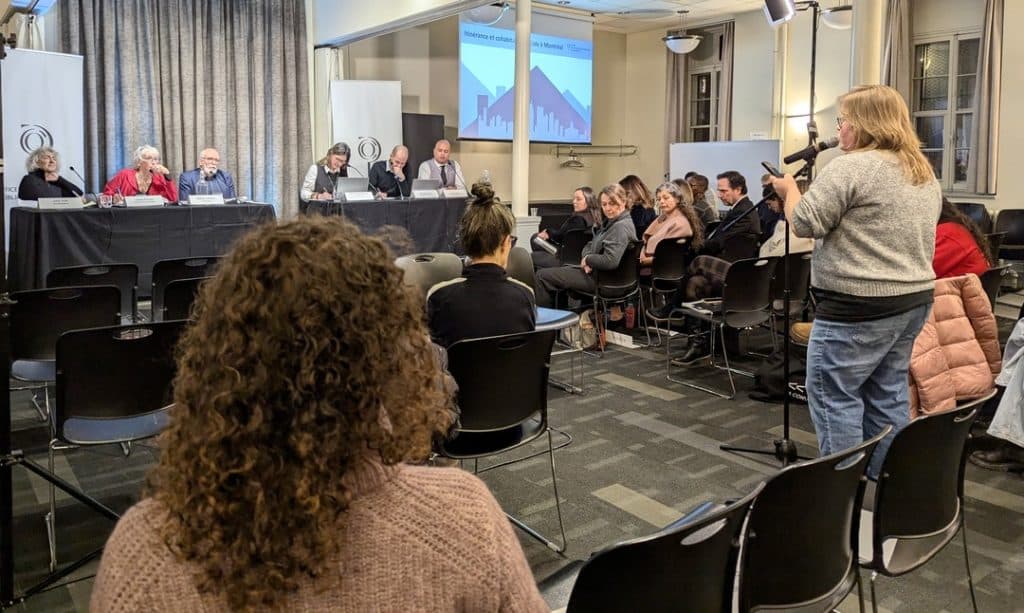 Among the audience was Héloïse Koltuk, an employee at Entremise, a Montreal company that creates living spaces in vacant buildings. “Every day I see people sleeping at my door, outside in the cold, while I manage an enormous heated and empty building,” explained the young professional. Koltuk takes care of a building near Berri-UQAM station, very close to the Montreal Bus Station and the BAnQ, which she describes as “the showcase of homelessness in Montreal.”