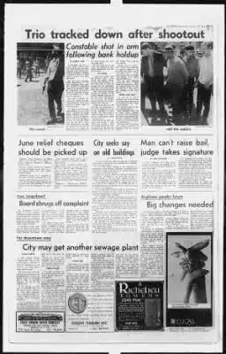 During the standoff, the Montreal Gazette dispatched a photographer to the scene and he captured a few shots of the action. In one of them, a young man dressed in a t-shirt and blue jeans (who bears a striking resemblance to this reporter) watches on as police arrest the robbers.