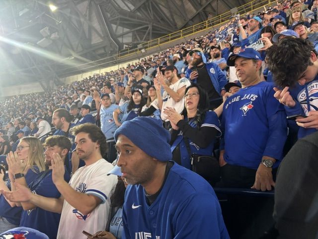 The anxiety in the SkyDome (I’m not calling it by the other name) is palpable; I see the man in the Bichette jersey in front of me rocking anxiously back and forth. The father and daughter beside me are no longer smiling or seemingly having any fun.