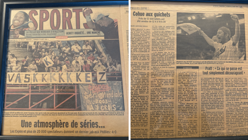 In the final game of the series, over 20,000 showed up on a Thursday afternoon. Future hall of famer Guerrero hit a home run in the bottom of the 1st, and the party was on. Believer fever, indeed. The Expos swept the Phillies, and I felt a sensation foreign to Montreal baseball fans — hope. La Presse captured my joy, for posterity.