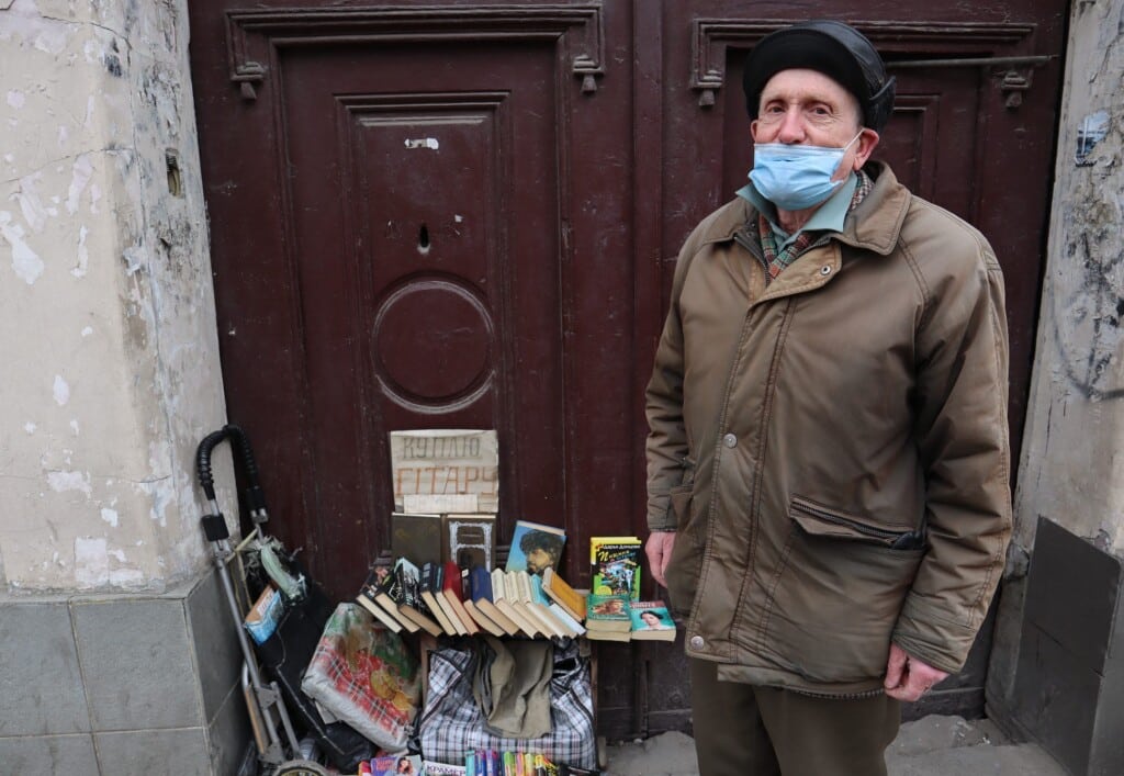 An elderly man peddles books from his collection across from the Gothic church. He needs some cash to get through another month of belt tightening. Serhii was born in 1945, when Ukraine was only recovering from a war that killed an estimated 7 million of their people. He still remembers the day they announced Josef Stalin’s death.