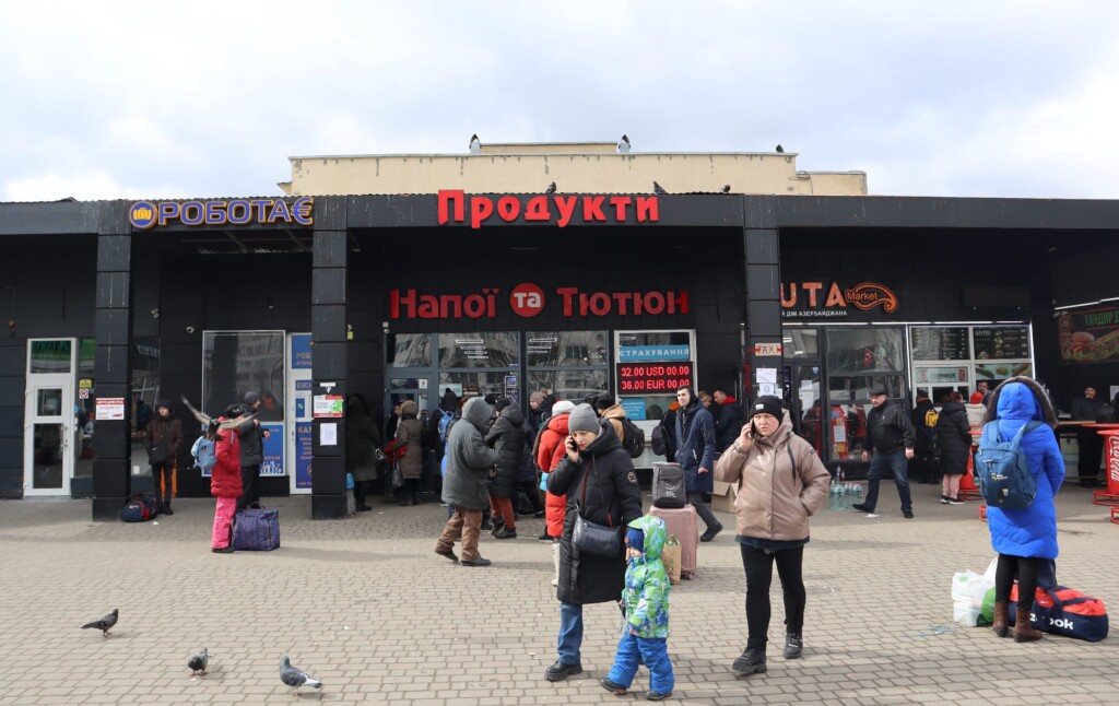 The men, brothers, describe heavy traffic leaving the city and a series of checkpoints on the long road to Lviv. Some chose to leave at night and drive through country roads with their headlights turned off. It can take 24 hours to drive the 540 kilometre trek. I ask how they explain this war to children. Do they just tell them they’re going on an adventure?