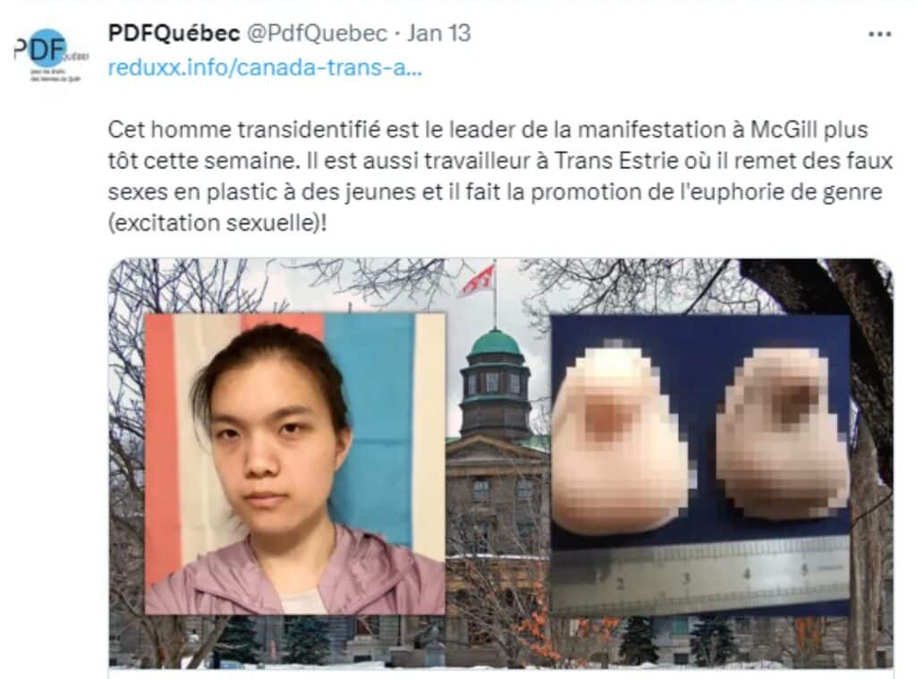 In a post attacking transgender people, PDF Québec misgenders them, refers to their gender-affirming care as mutilation and claims they hate themselves.