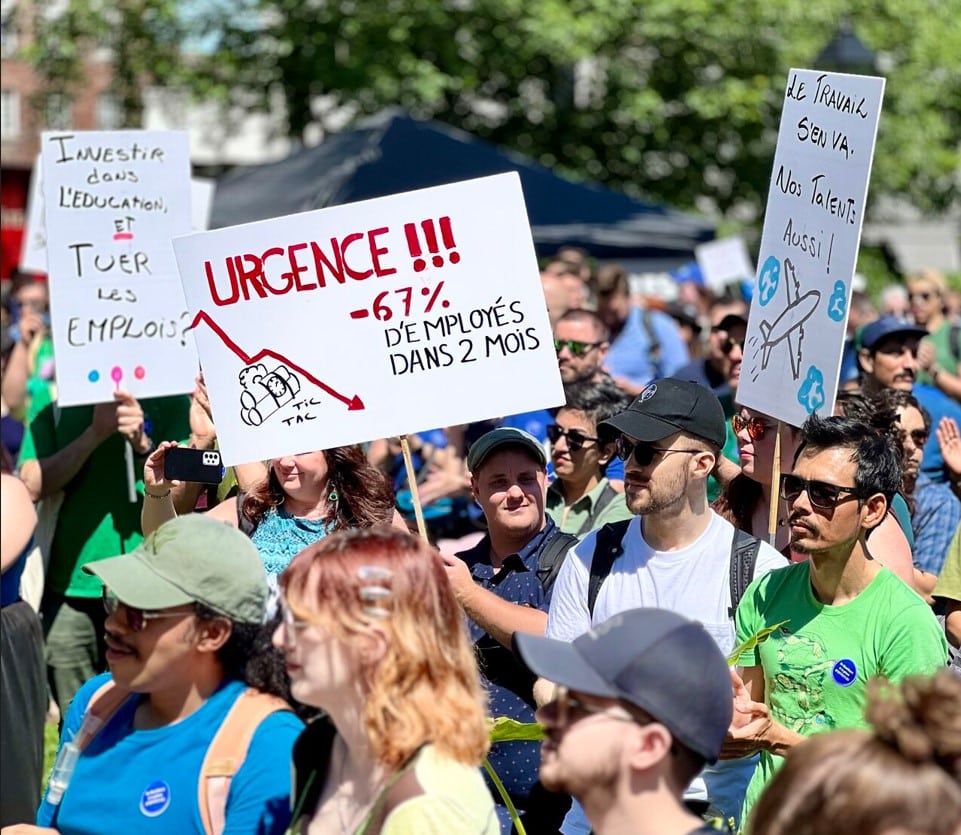 They created an event on LinkedIn and Facebook called “Le Québec n’a plus d’effet(s) / Québec has lost its effect(s),” a sit-in at city hall organized in just two weeks.