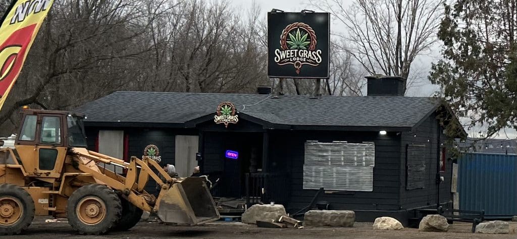 Four sources in Kanesatake say they heard shots fired outside the Sweet Grass Lodge around 5:30 a.m. Thursday. They say the driver of a black car pulled into the dispensary’s parking lot, slammed down on the accelerator and crashed into the building, destroying its wooden porch.